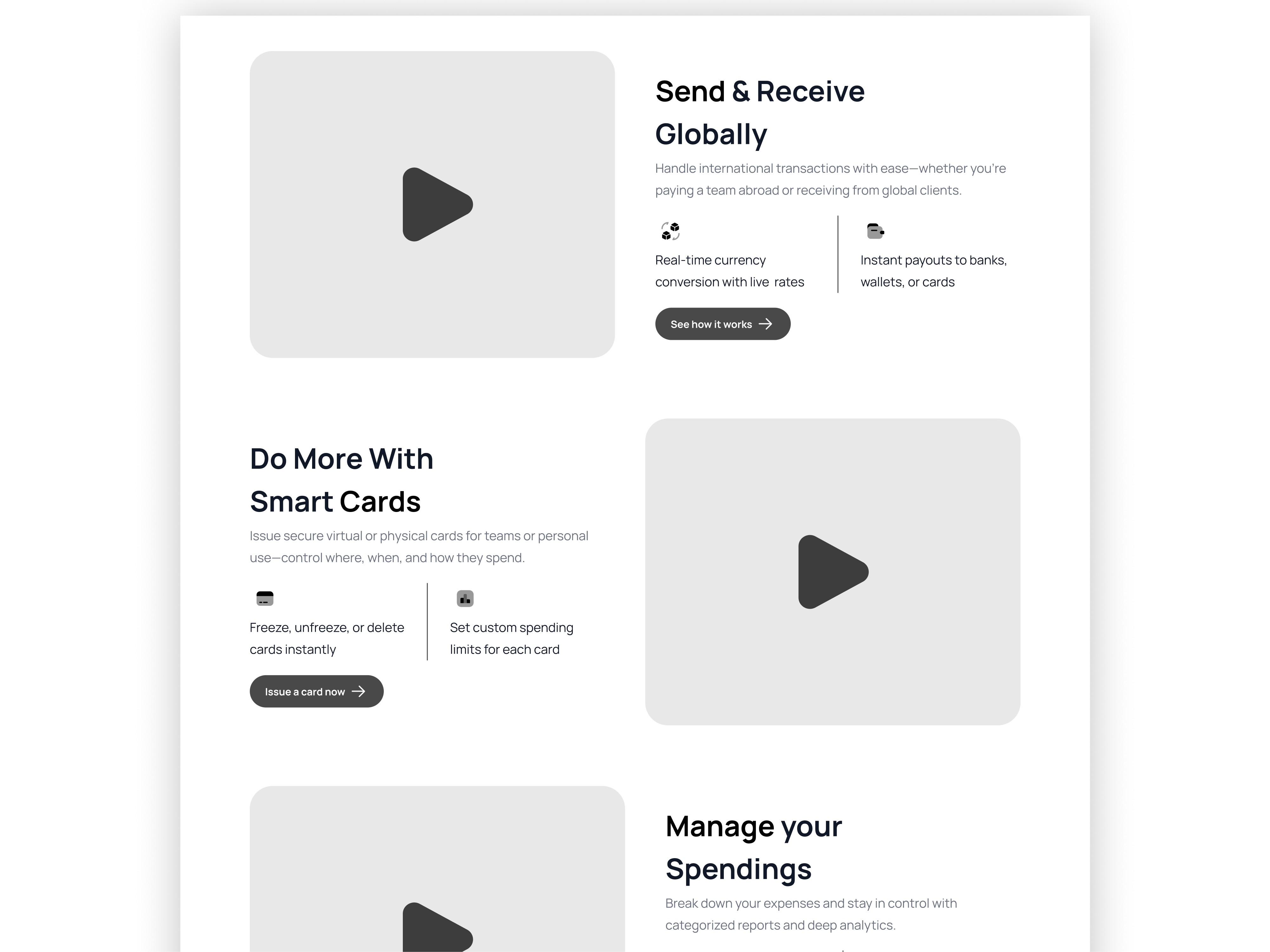 A clean preview with hover animations, giving users a feel of the platform before signup.